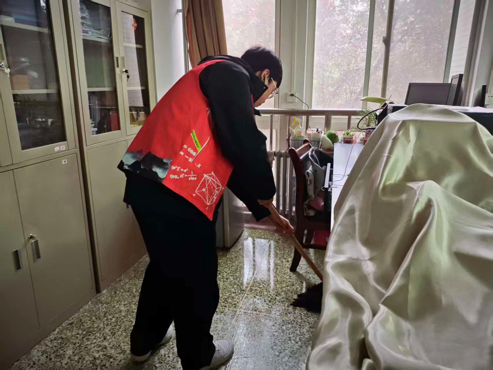 活动开始前,实验室负责老师向同学们介绍了学院实验室的功能、明确清扫重点以及注意事项,在领取劳动工具后同学们迅速前往各自负责的区域开始打扫。志愿者们则以小组为单位,有的拿起抹布细致擦拭仪器表面的灰尘,让每一处都焕然一新;有的分类整理实验耗材与文件资料,将物品摆放得整整齐齐;有的同学手持扫帚,仔细清扫地面的灰尘与杂物,不放过任何一个角落。整个清扫过程中,大家各司其职、干劲十足,尽管汗水浸湿了衣衫,脸上却始终洋溢着温暖的笑容,展现出了学院学子团结协作、奋发向上的青春风采。