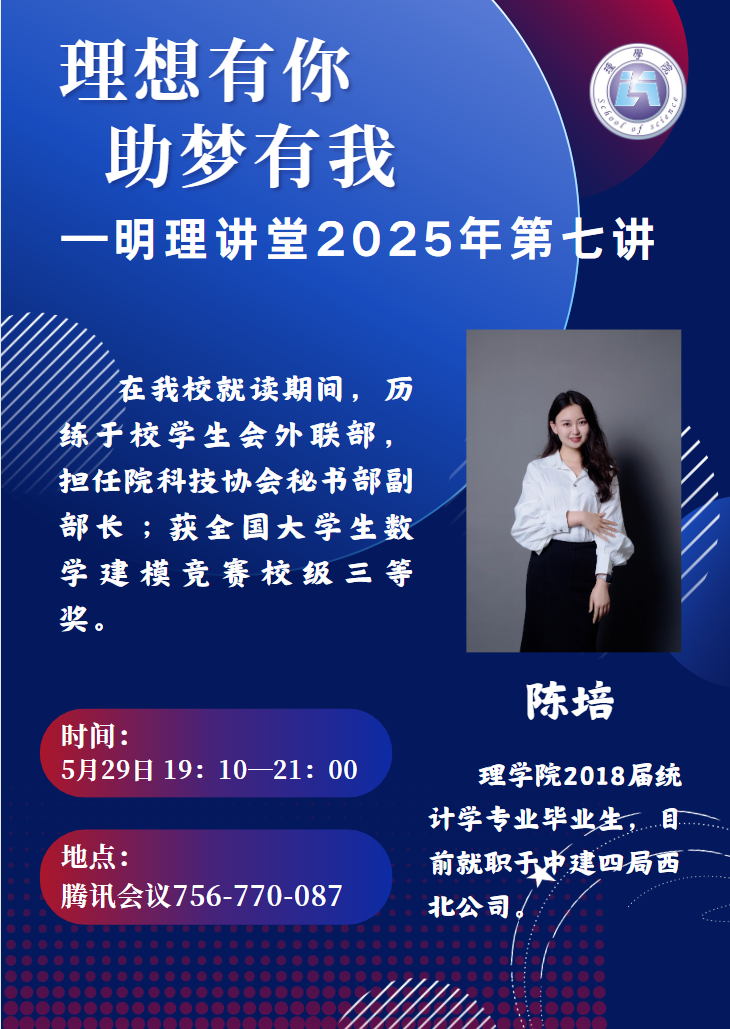 为引导学生树立正确就业观念,明晰未来职业发展方向,5月29日晚,suncitygroup太阳集团举办了理想有你,助梦有“我”之明理讲堂2025年第七讲暨suncitygroup太阳集团2025年团委就业引航计划。学院2018届统计学专业毕业生、现就职于中建四局西北公司的校友陈培进行了职业规划与就业指导经验分享。suncitygroup太阳集团党委副书记文毅,2023级辅导员宋琦以及2022、2023、2024级本科生参加。讲座上,陈培首先围绕“大学应该怎么学”这一话题展开分享,强调大学不仅是知识储备...