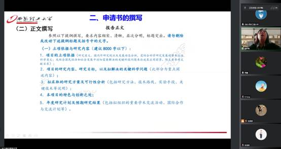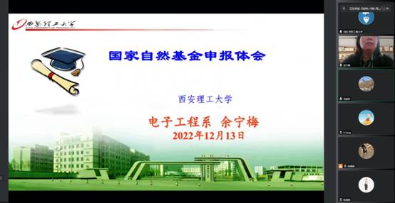 2022年12月13日下午,suncitygroup太阳集团邀请西安理工大学电子科学与技术学科带头人、陕西省教学名师、陕西省军民两用集成电路设计中心主任余宁梅教授为学院师生开展了线上学术报告,报告的题目为“国家自然基金申报体会”。有50余名师生参加了此次线上学术报告会。内容涉及选题和题目确定、申请书撰写等,报告中针对选题的四类科学问题属性、选题注意事项、立项依据中的老问题老方法、老问题新方法、新问题老方法、新问题新方法,以及申报书需要从国家政策、社会发展、应用前景、学术重要性等方面引出科学问题等基金申报的重点问题进行了展开叙述。报告中就国家自然基金申报、以及具体学术问题与我院师生开展了深入的讨论交流。通过此次学术讲座,拓展了suncitygroup太阳集团师生对国家自然基金申报的认识,了解了国家自然基金申报的更多方法,suncitygroup太阳集团师生表示受益匪浅。