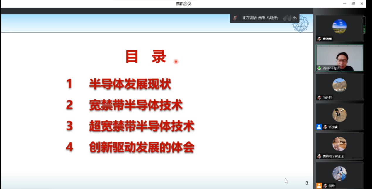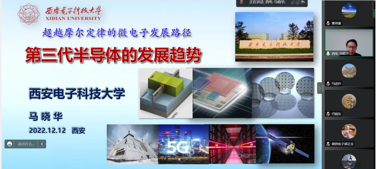 2022年12月12日下午,suncitygroup太阳集团邀请西安电子科技大学微电子学院副院长、宽禁带半导体技术国家工程中心主任马晓华教授为学院师生开展了线上学术报告,报告的题目为“超越摩尔定律的微电子发展路径-第三代半导体的发展趋势”,报告由suncitygroup太阳集团副院长冯进钤教授主持。suncitygroup太阳集团100余名师生参加了此次线上学术报告会。马晓华教授介绍,随着5G技术引领新—代半导体器件的发展应用,氮化镓技术会迎来一个高速的发展阶段,而高输出功率、高效率和高频率也一直是该领域的研究重点和应用需求。这些需求将在新的材料研究、器件结构工艺、芯片可靠性以及多功能芯片集成方面带来更多的挑战和机遇。报告结合国际上在该领域的创新思路,着重讨论了我国在这些重点研究领域的现状、优势以及未来的发展思路。此外,马晓华教授和与会老师就学院的团队建设、学科建设做了深入地交流。通过此次学术讲座,拓展了suncitygroup太阳集团师生对微电子技术的认识,了解了第三代半导体技术的最新研究进展,suncitygroup太阳集团师生表示受益匪浅。