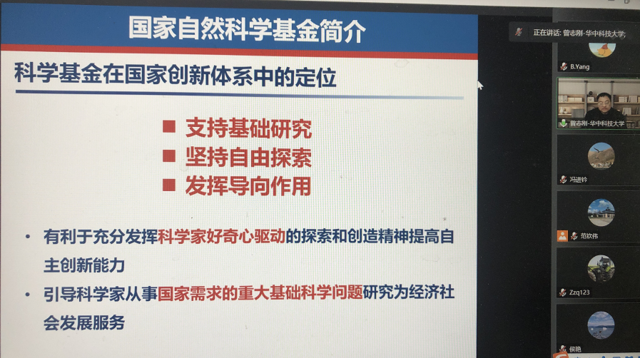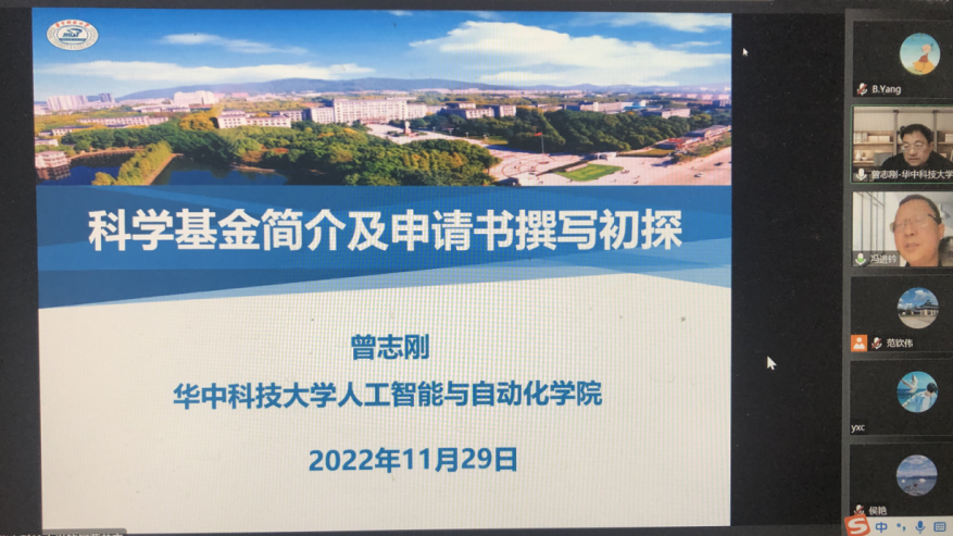 2022年11月29日,华中科技大学曾志刚教授通过线上方式为我校师生做了题目为“科学基金简介及申请书撰写初探”的专题报告。报告会由suncitygroup太阳集团副院长冯进钤教授主持,学校各相关学院共计190余名师生参加了此次会议。
