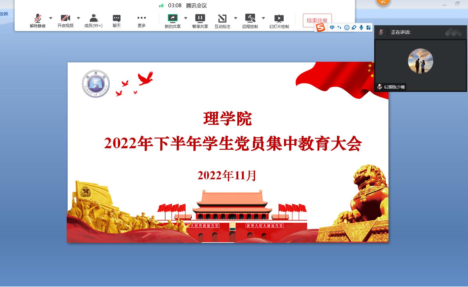 2022年11月28日晚,suncitygroup太阳集团通过线上举行了2022年下半年学生党员教育大会,全体学生党员参加。院党委副书记文毅主持主讲。