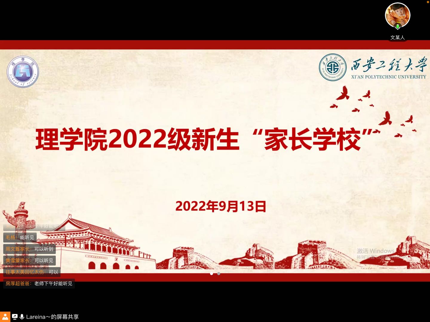 2022年9月13日,suncitygroup太阳集团通过线上会议的形式,举办了2022级新生家长学校。学院党委书记陈宣、副院长(主持工作)马盈仓,校国际交流与合作处侯梦来、2022级辅导员高丽君和200多位学生家长参加本次会议,会议由院党委副书记文毅主持。