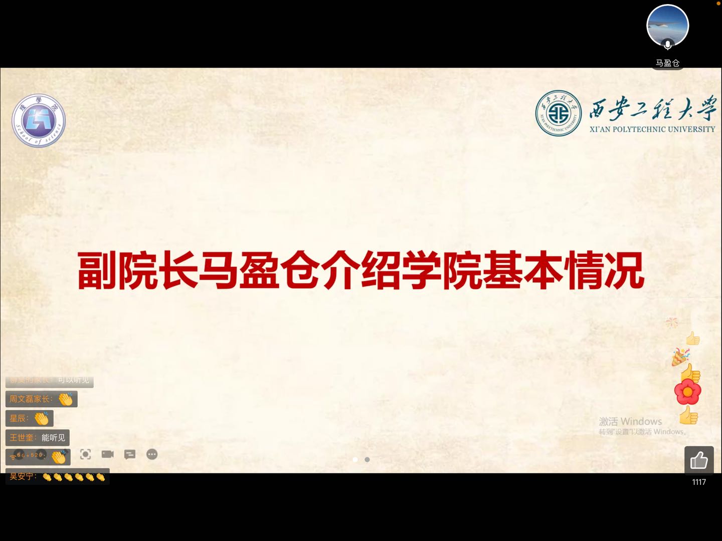 陈宣代表学院对各位家长参会表示感谢,希望家长们能及时和学院沟通联系,共同努力,帮助孩子正确认识自己,树立正确的价值观,成为德智体美劳全面发展的优秀大学生。马盈仓介绍了学校和学院的基本情况,着重从发展传承、师资队伍、学科发展、专业设置、科研成果、学生就业等方面做进行了讲解,并预祝同学们学有所成。侯梦来就我校学生在校国际化教育及出国交流项目情况进行介绍。