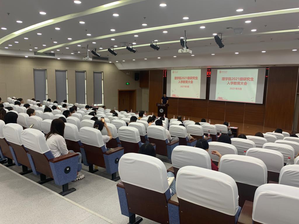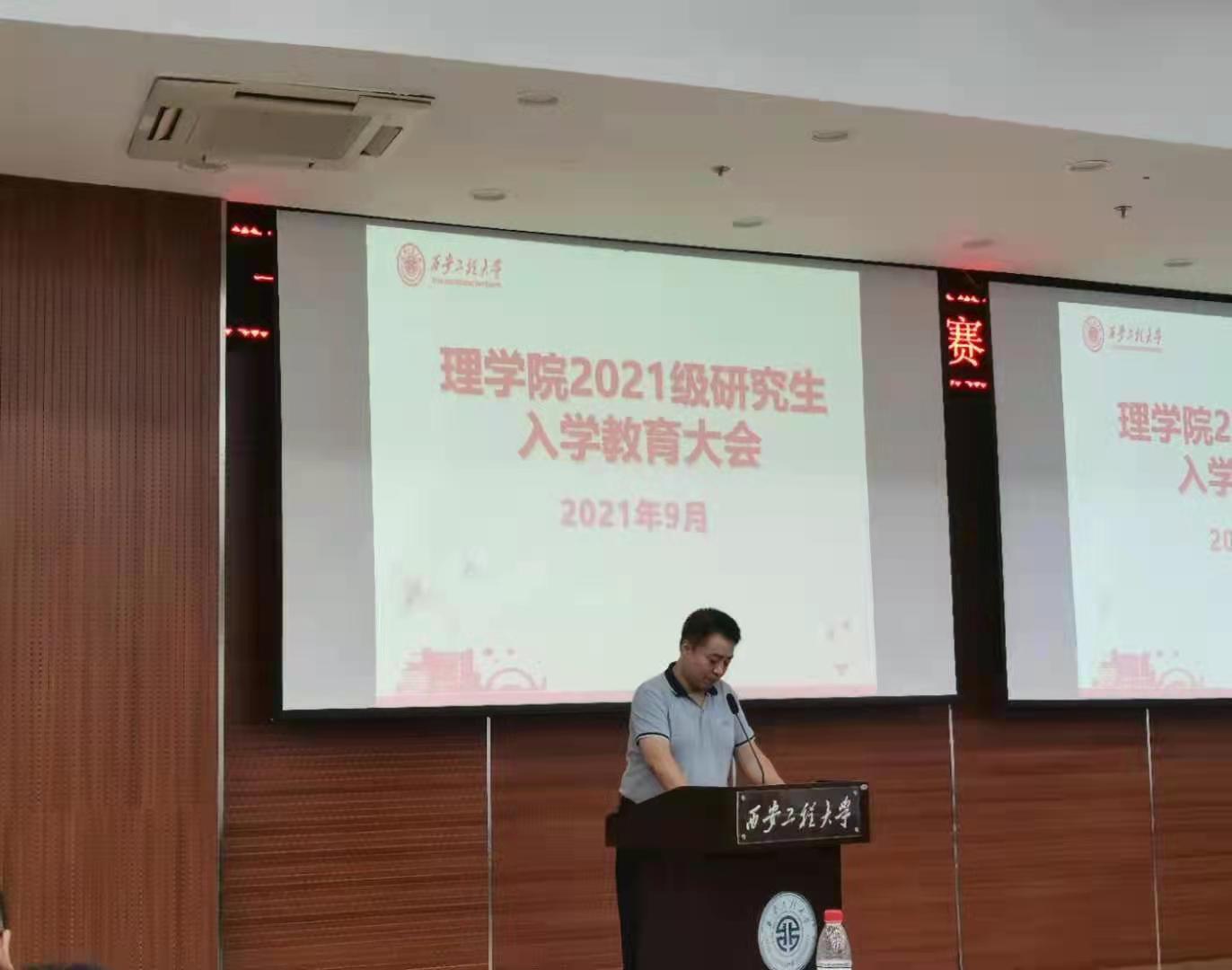 夏蔡娟立足百年未有之大变局,分别从数学、物理的内涵与发展趋势引入两个学科与当代科技创新;从学院的发展史、学科设置、师资力量以及人才培养目标等方面简单介绍了学院的发展;从实验室建设、科研平台建设、国内外学术交流、研究生交流等方面介绍了研究生培养,并勉励在座的研究生新生用三年的时光成就一生,不负青春,成就精彩人生。