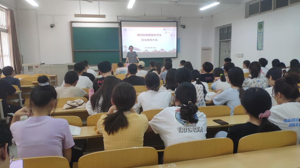 为进一步做好学院2021年暑期考研留校学生的安全教育工作。7月15日中午,suncitygroup太阳集团在临潼校区D184召开暑期留校学生安全教育大会,院学工办主任文毅、2018级辅导员高丽君以及因考研暑期留校的70余名学生参加了会议。
