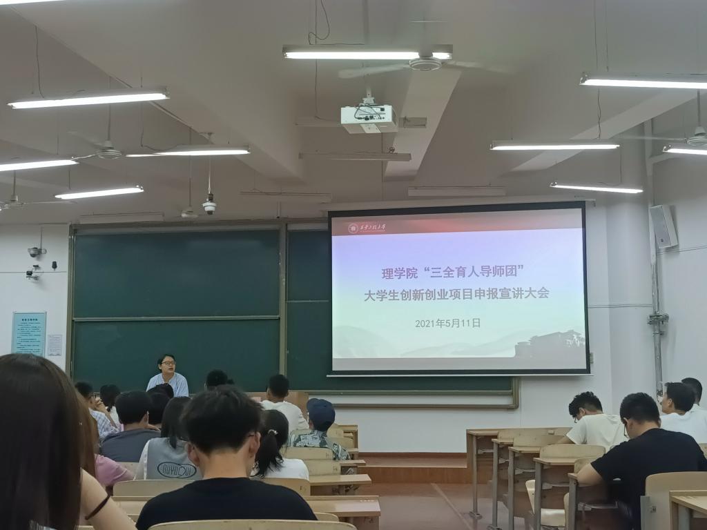 5月11日晚,suncitygroup太阳集团在临潼校区B137教室召开“三全育人导师团”创新创业项目申报宣讲会,工程训练中心刘宇程老师,suncitygroup太阳集团卢定泽教授、王春兰副教授,以及有丰富经验的高年级参赛学生代表和一二年级学生近200人参加。大会由院团总支书记宋宇宽主持。
