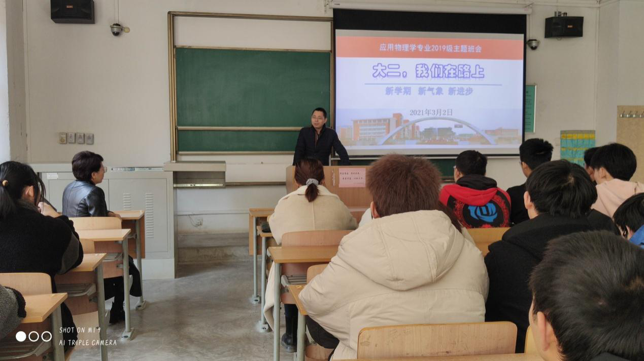 经过历史上最漫长的寒假,同学们终于返校了,应用物理学专业的各项教育教学活动也紧锣密鼓地逐一展开。2021年3月1日,2019级应用物理学专业召开了以“大二,我们在路上”为主题的新学期首次班会,班会由班主任王秋萍主持,教学副院长成鹏飞列席了班会。