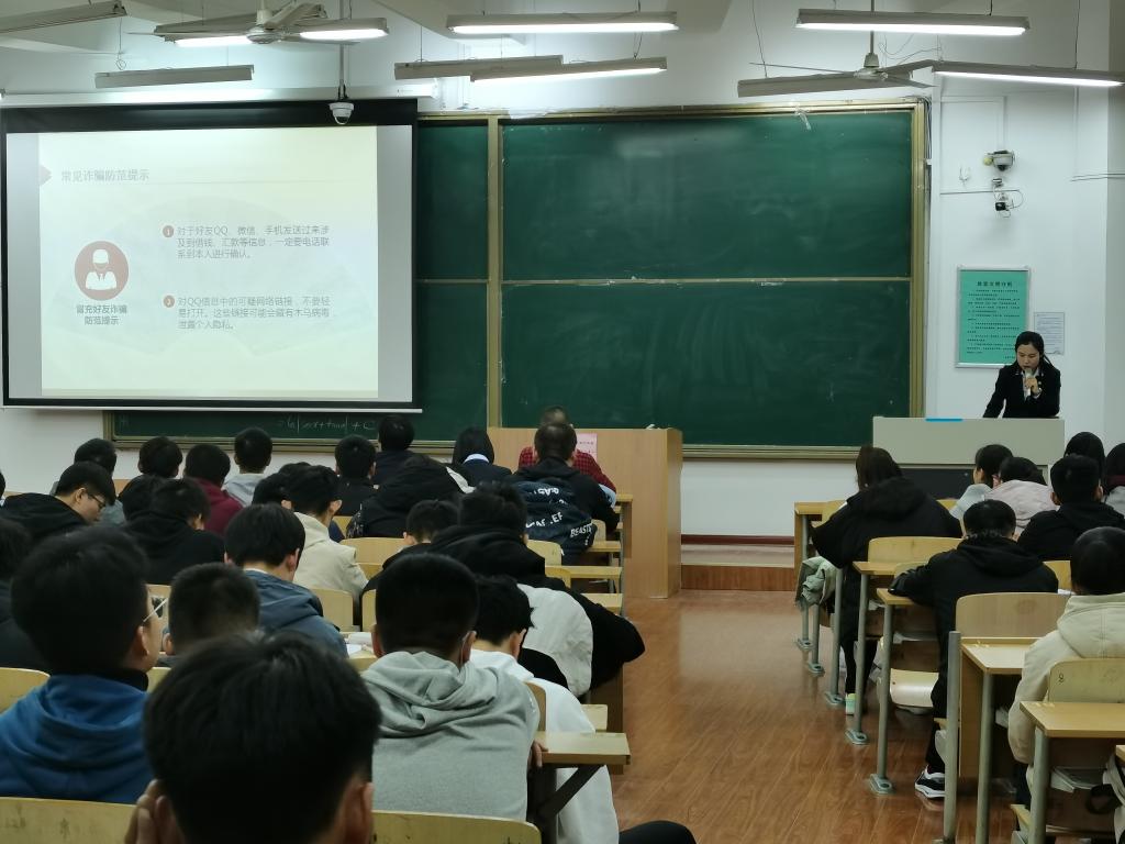 为让同学们了解一定的金融知识,预防电信诈骗,抵制非法校园贷,11月19日晚,suncitygroup太阳集团邀请中国银行临潼区城关支行李韦阳行长,秦岚经理、党京京经理一行三人对低年级学生开展了预防电信诈骗、网贷(校园贷)知识讲座。讲座由院学工办主任文毅主持。