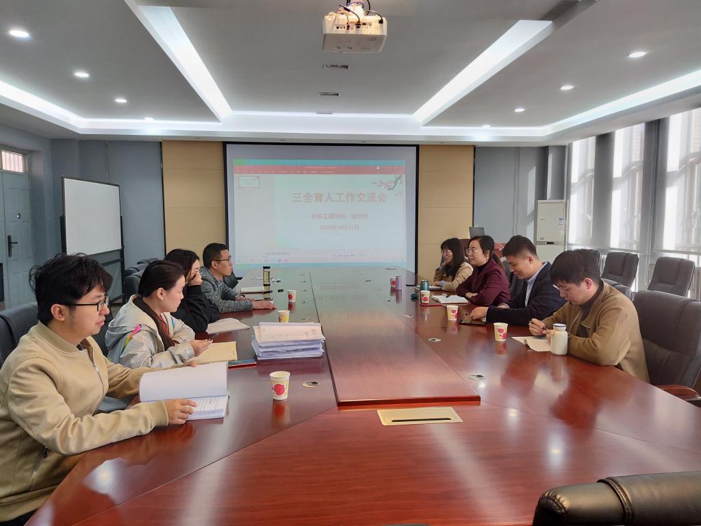 10月21日上午,材料工程学院和suncitygroup太阳集团在物理楼会议室举行了三全育人工作交流。材料工程学院党委副书记刘畅、学工办副主任常传旭、辅导员侯润泽、马越,suncitygroup太阳集团辅导员宋宇宽、边冠莉、田宇飞、刘沫含参加。suncitygroup太阳集团学工办主任文毅主持了交流活动。