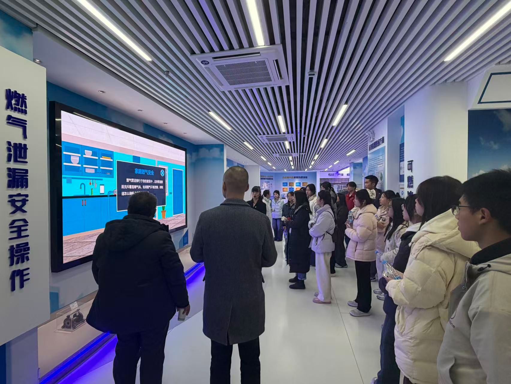 随后,师生党员前往秦华集团燃气科普基地,依次参观了“燃气发展史”、“企业发展史”、“燃气科普区”等板块,通过厨房场景复原、燃气设备演变实物展陈等内容,生动展现了燃气行业的发展变迁与秦华燃气集团深耕民生服务、勇担社会责任的企业担当。在互动体验区,师生党员积极参与模拟实操,系统学习了燃气安全使用规范、泄漏检测技巧、应急处置流程等,切实将燃气安全知识入脑入心,进一步提升了安全防范意识和应急处置水平。参与活动的师生党员纷纷表示,将以此次活动为契机,把锤炼而成的党性修养和所学的安全知识转化为推动工作学习的强大动力,立足本职岗位勇毅担当、砥砺奋进,以实际行动为学院事业高质量发展贡献力量。