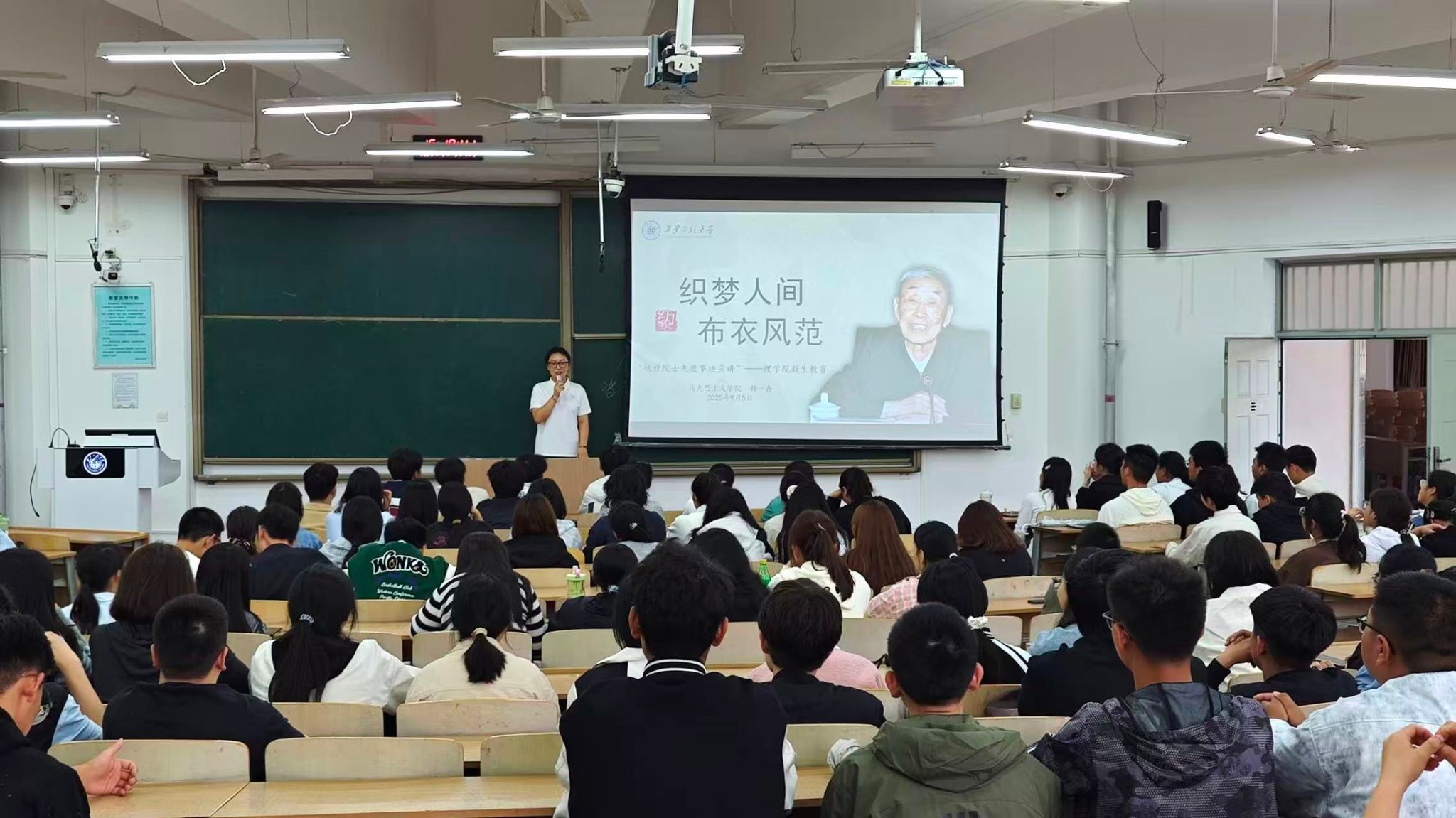 宣讲报告以“织梦人间,布衣风范”为主题,系统回顾了中国工程院院士姚穆先生科技报国、奉献纺织的一生。从青年时期响应号召、转学西北支持建设,到特殊时期坚守科研、逆境中攻坚克难;从执教七十余载严谨治学、倾心育人,主编经典教材《纺织材料学》,到带领团队突破“军港纶”“非典防护服”等关键技术,开拓了人体着装舒适性领域的理论研究,姚穆院士始终以国家需要为方向,将个人理想融入时代发展,在纺织材料领域深耕不辍,攻克一个又一个技术难关,为我国纺织工业发展奠定坚实基础,他不顾年事已高,坚持活跃在科研与教学一线,以言传身教为青年学子指引方向,姚穆院士用一生诠释了科学家精神的深刻内涵。宣讲会上,珍贵的历史照片、感人至深的视频资料,将姚穆院士的形象鲜活地呈现在新生眼前,现场掌声雷动,同学们深受触动、反响强烈。大家纷纷表示要以姚穆院士为榜样,在未来的学习生活中,坚定信念、积极进取,努力拼搏、不负韶华,在新时代的广阔天地中书写属于自己的青春华章。