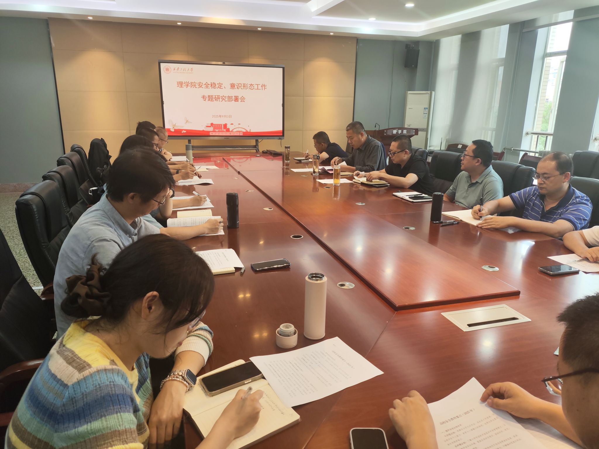 9月3日,suncitygroup太阳集团召开安全稳定和意识形态工作专题研究部署会。院长马盈仓、党委副书记刘玉森、文毅、副院长冯进钤、张国青以及学工办、办公室和各系部负责人参加了会议,会议由刘玉森主持。