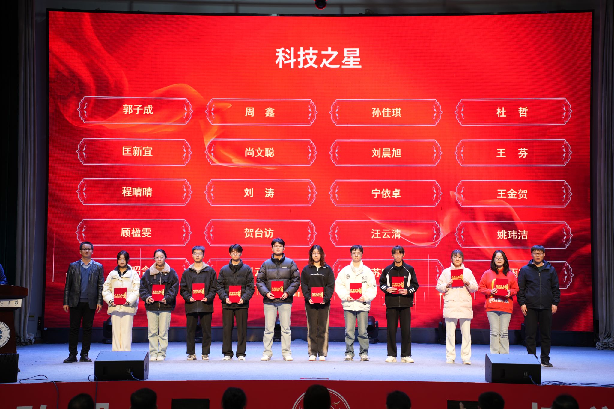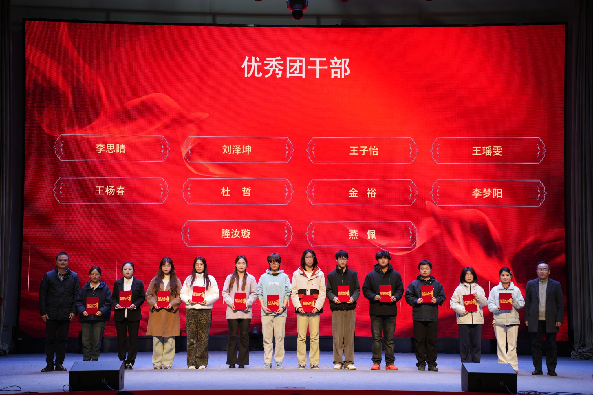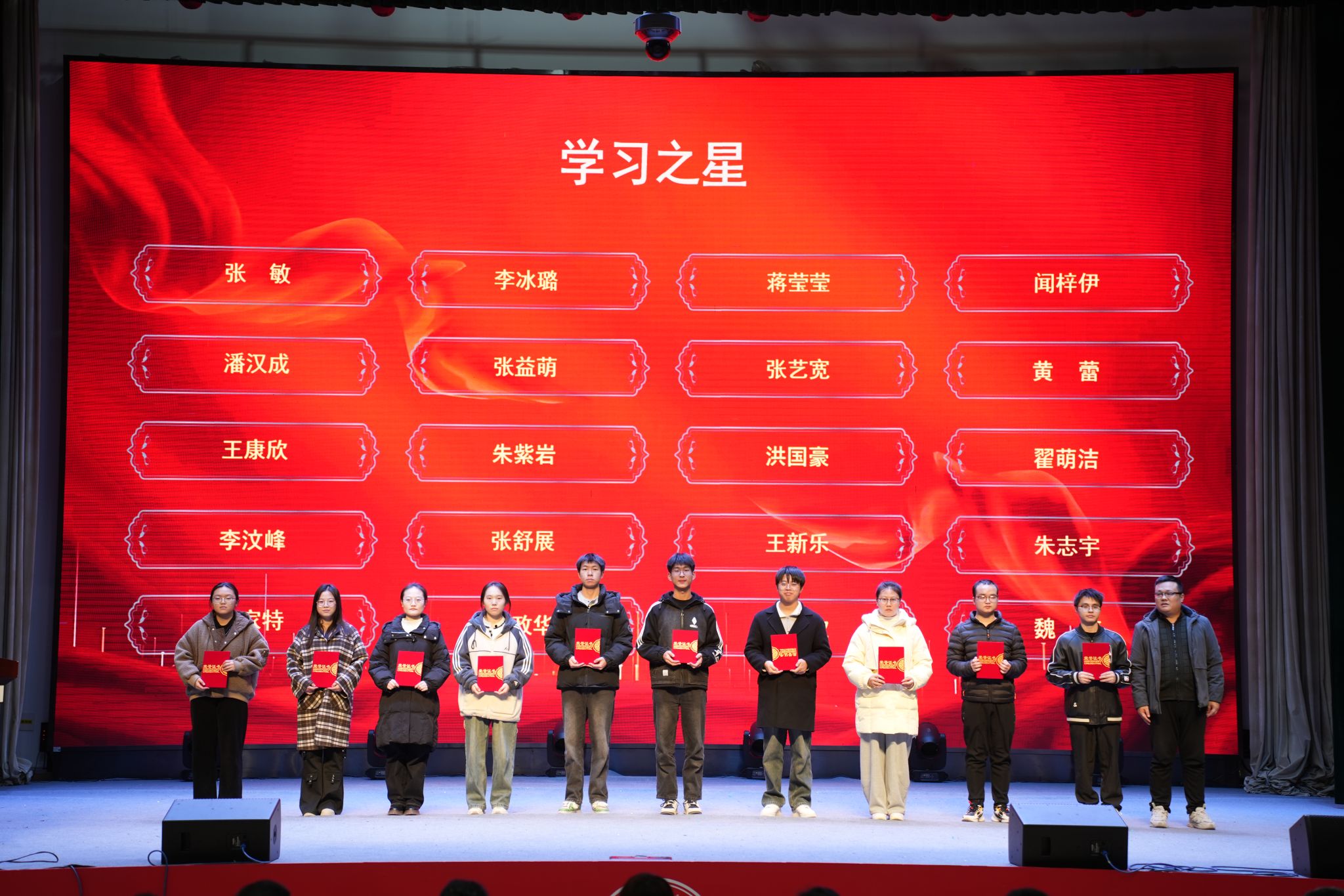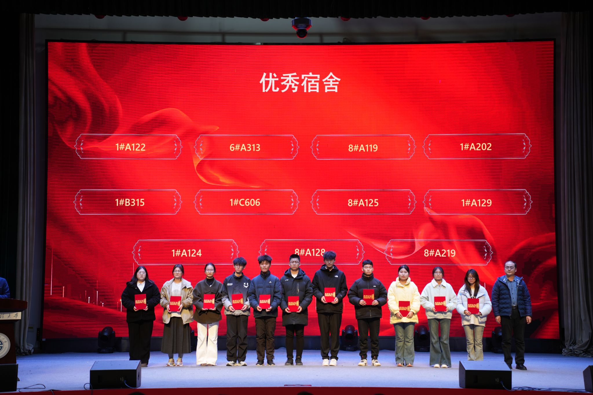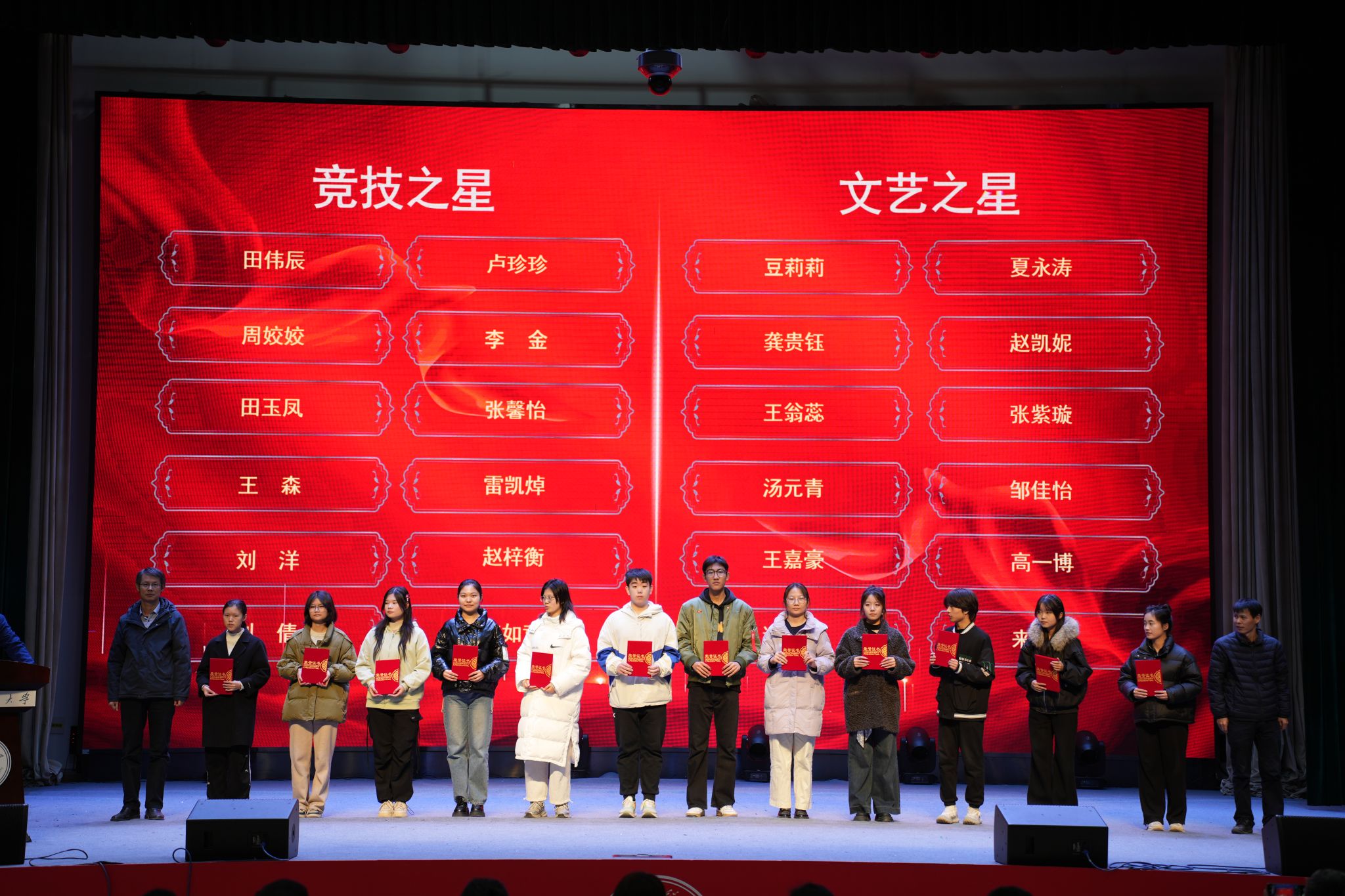 颁奖环节,与会嘉宾依次为“五星工程”先进个人、优秀宿舍、优秀学生与团员、优秀学生干部与团干部、先进班集体、学科竞赛获奖者及国家奖学金获得者等七类先进代表颁奖,全方位展现了suncitygroup太阳集团学子在德智体美劳全面发展中的卓越风采与昂扬风貌。国家奖学金获得者代表邢艺耀结合自身求学经历分享成长感悟。