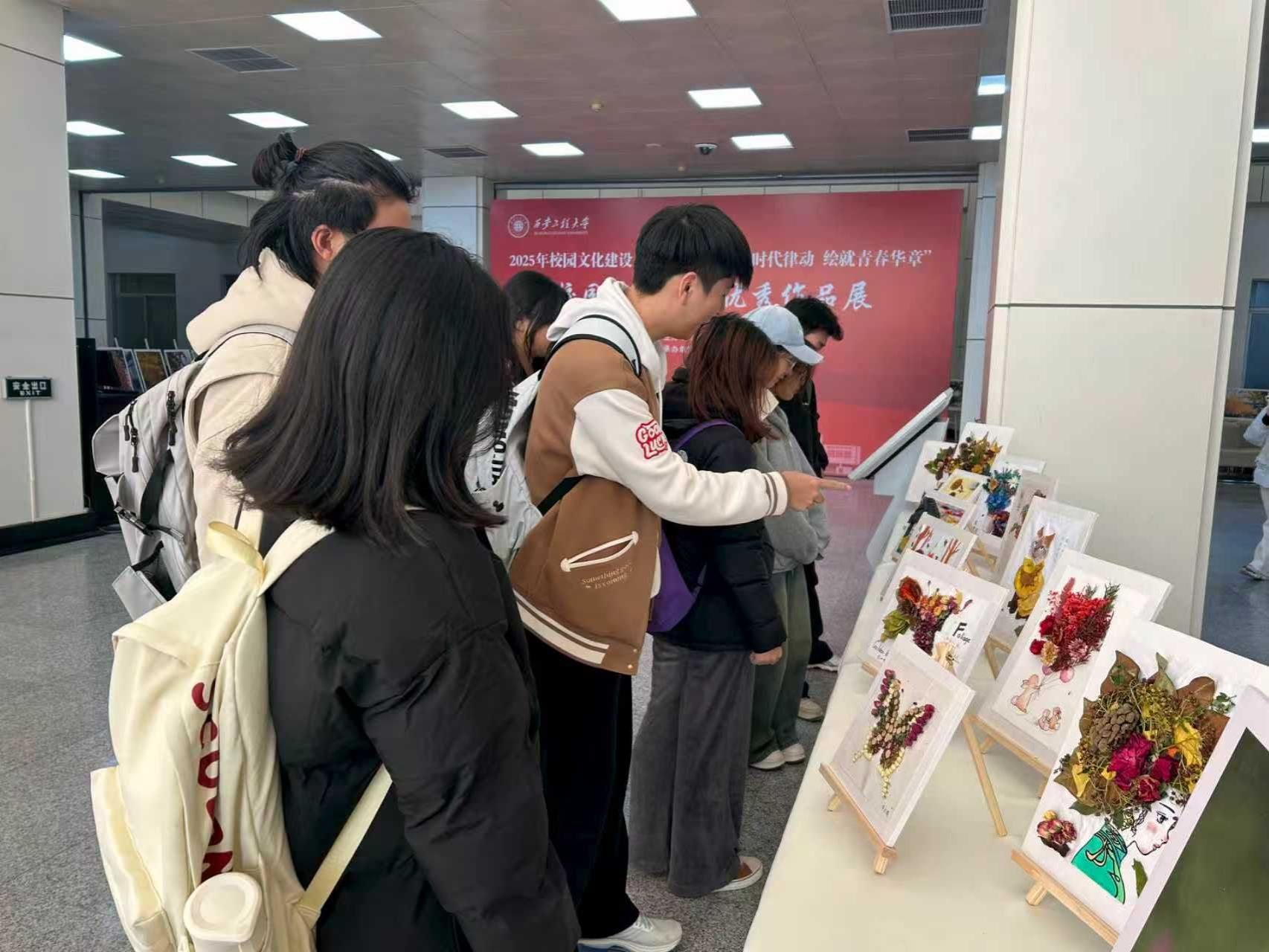 11月27日,我校“感悟时代律动 绘就青春华章”校园美育文化作品展于临潼校区图书馆展出。作为学校2025年校园文化建设系列活动之一,展览通过艺术作品传递青春朝气与创意想象,引导青年学生在艺术实践中感知时代脉搏,坚定文化自信。校党委副书记殷永建出席开幕式并致辞。