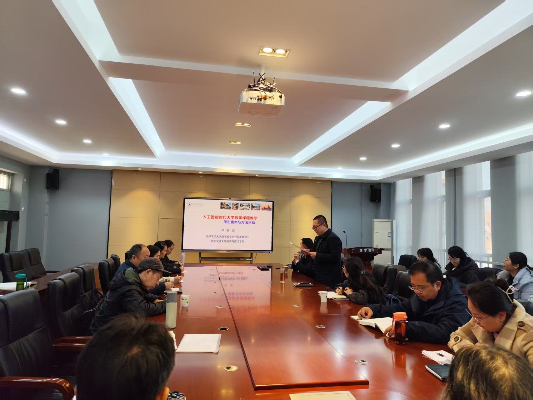 12月1日,suncitygroup太阳集团在临潼校区举办了主题为“人工智能时代大学数学课程教学改革——理念更新与教学创新”的学术报告,旨在主动适应人工智能技术对高等教育的深刻变革,精准把握大学数学课程教学改革的前沿方向。本次报告特邀西安交通大学李继成教授担任主讲嘉宾,学院30余名教师齐聚现场交流学习,报告由院长马盈仓主持。